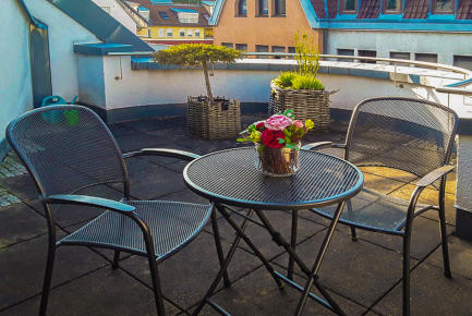 Pfiffiges City-Apartment in gepflegter Wohnanlage mit Aufzug1-Zimmer, ca. 40 qm Ruhiges WohnumfeldBad mit WC und DuscheGröße Bett: 140 x 200 cmKochnische (voll ausgestattet)Dachgarten mit Bestuhlung Waschmaschine (zur allg. Nutzung) Parkplätze im InnenhofBus und Bahn leicht erreichbarStandort: Albstadt-Ebingen