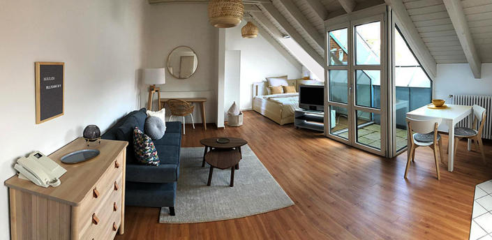 Pfiffiges City-Apartment in gepflegter Wohnanlage mit Aufzug1-Zimmer, ca. 40 qm Ruhiges WohnumfeldBad mit WC und DuscheGröße Bett: 140 x 200 cmKochnische (voll ausgestattet)Dachgarten mit Bestuhlung Waschmaschine (zur allg. Nutzung) Parkplätze im InnenhofBus und Bahn leicht erreichbarStandort: Albstadt-Ebingen