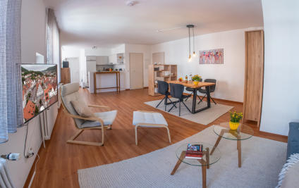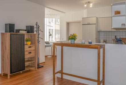 Pfiffiges City-Apartment in gepflegter Wohnanlage mit Aufzug1-Zimmer, ca. 60 qm Ruhiges WohnumfeldBad mit WC und DuscheGröße Bett: 180 x 200 cmKochnische (voll ausgestattet)Dachgarten mit Bestuhlung Waschmaschine (zur allg. Nutzung) Parkplätze im InnenhofBus und Bahn leicht erreichbarStandort: Albstadt-Ebingen